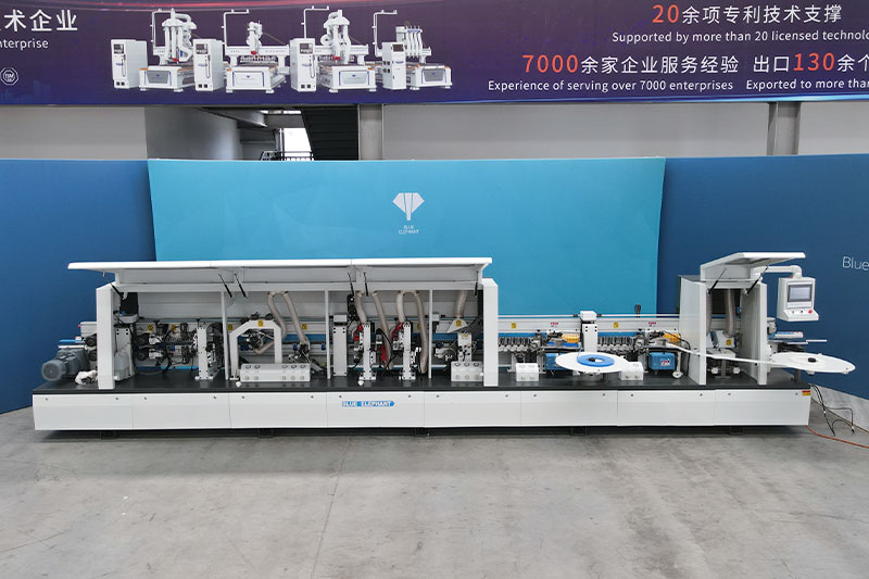 主要功能:预铣-涂胶贴边1-六轮压贴-烤灯1-涂胶贴边2-六轮压贴-烤灯2-前后齐头-精修1-精修2-跟踪修边-气动刮边-平刮-气动抛光1-气动抛光2-屏幕一键控制前后清洗。